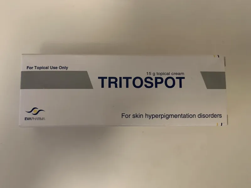 Крем Трітоспот є комбінацією чотирьох ефективних компонентів для зменшення гіперпігментації шкіри. Гідрохінон є депігментуючим засобом для шкіри при таких станах, як хлоазма, меланодермія та ластовиння. Присутність Евзолекс як сонцезахисний засіб зменшує шанси на репігментацію шкіри. Третиноїн стимулює епітелій, створюючи менш згуртований роговий шар, який легше відшаровується. Гідрокортизон допомагає покращити результати та водночас зменшує запалення, яке може виникнути.
